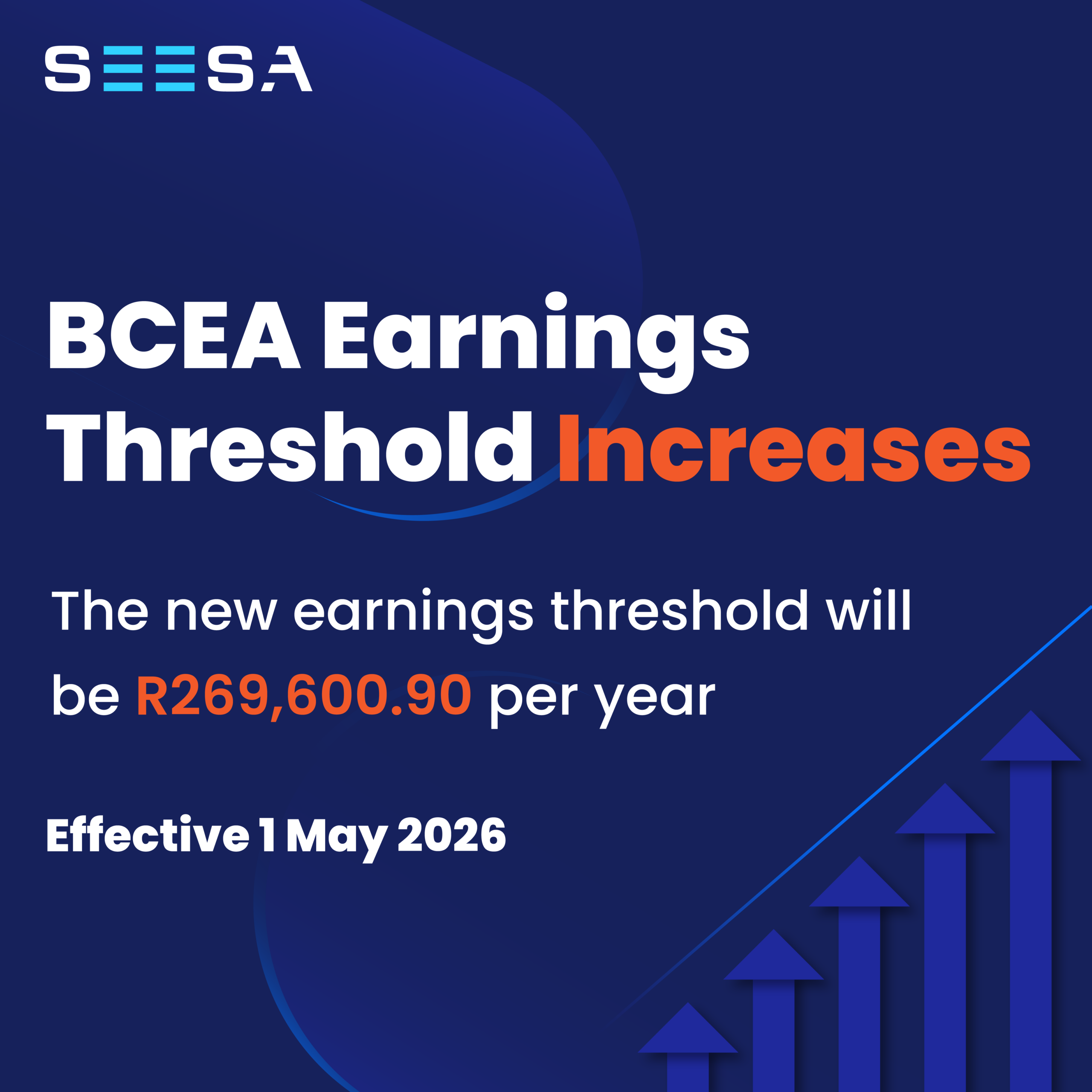 From 1 May 2026, the BCEA earnings threshold is R269,600.90 per year, or about R22,466.74 per month.
